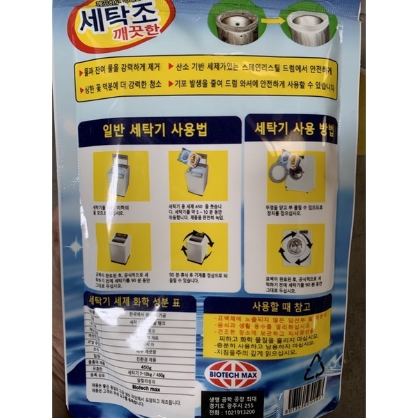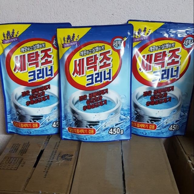 ✔ 1 gói 450gr sử dụng cho 1 lần vệ sinh với máy giặt từ 7kg ~ 12kg. Máy giặt to hơn thì dùng 2 gói.