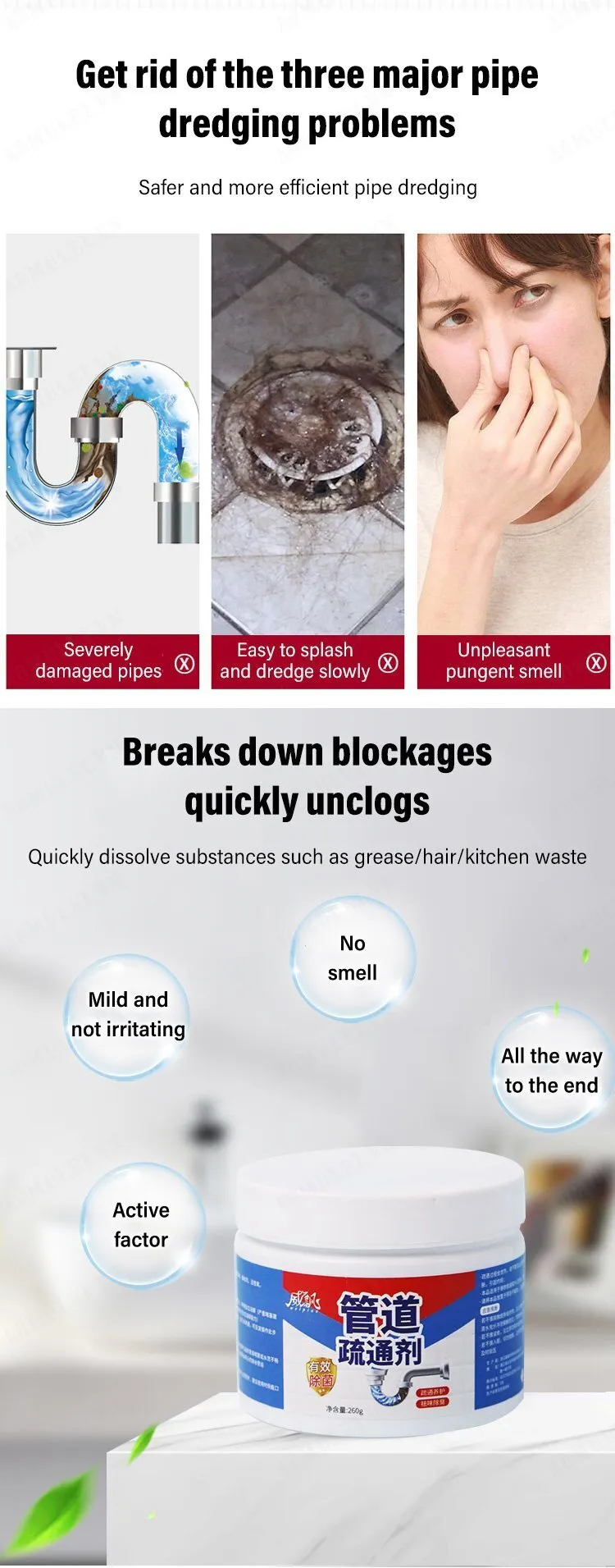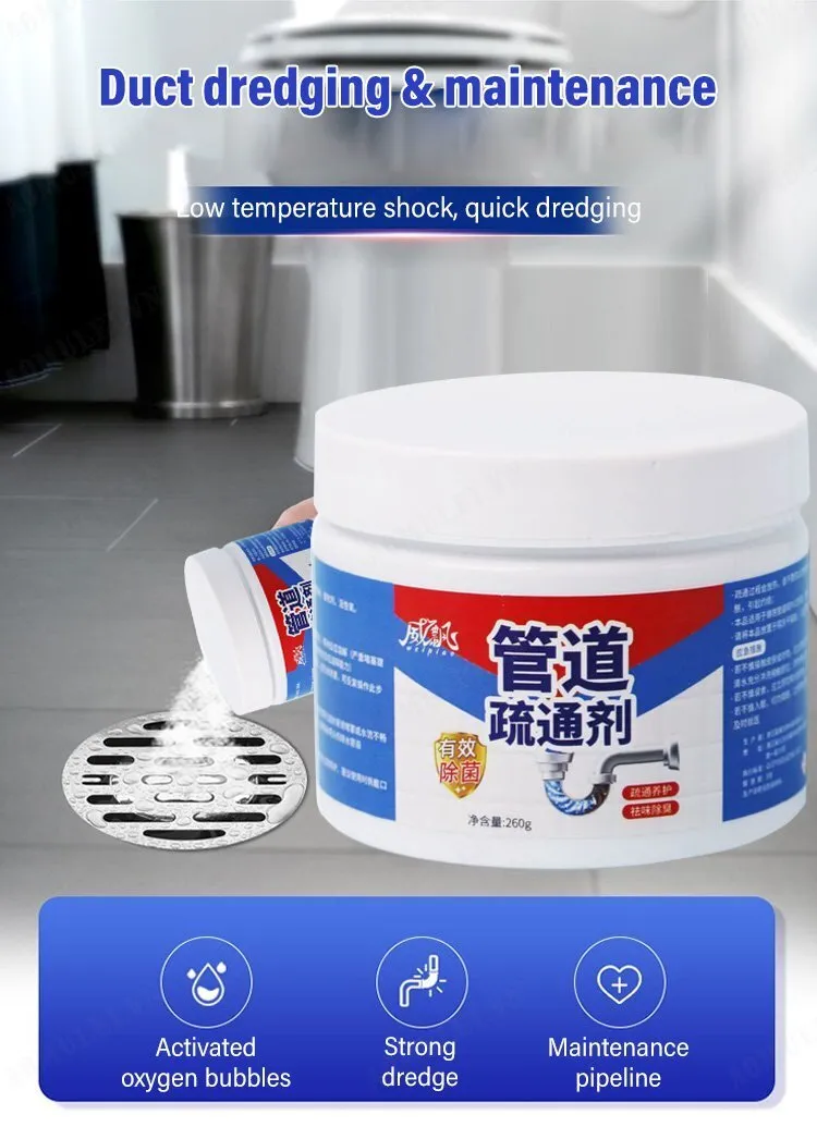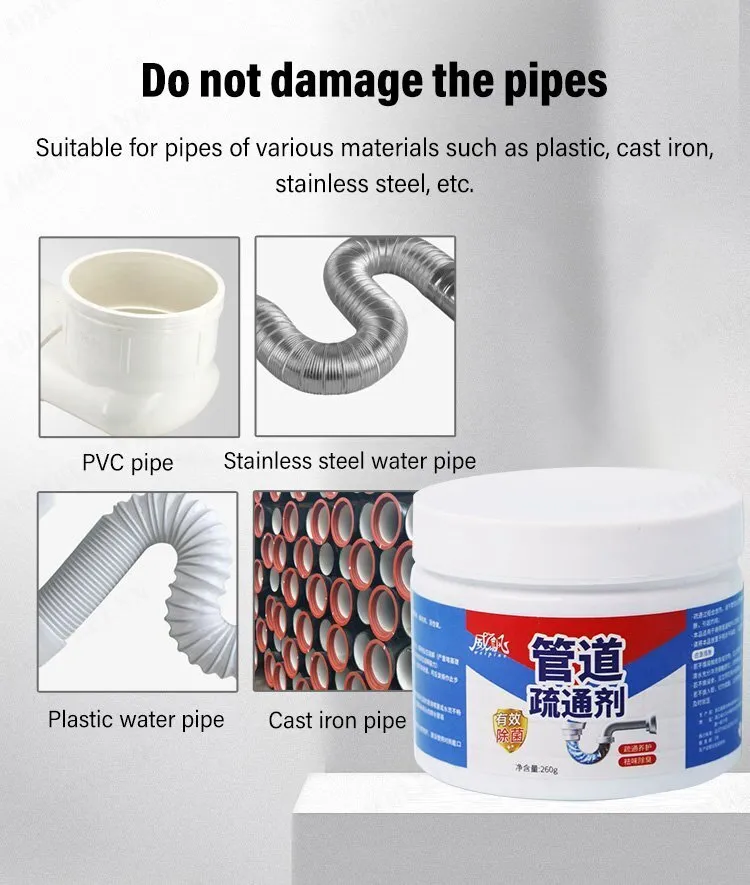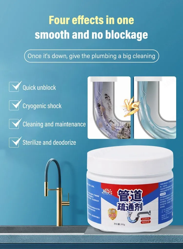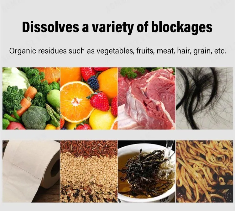 – Bột thông sạch cực mạnh giúp đánh bay các chất thải như dầu mở, rác thải, cặn bẩn, côn trùng chết và các chất hưu cơ. Hóa lỏng các vật cản trong đường ống giúp nước thoát trơn tru.