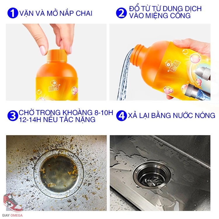 Bột vệ sinh khử mùi ống cống cchai màu cam 500ml