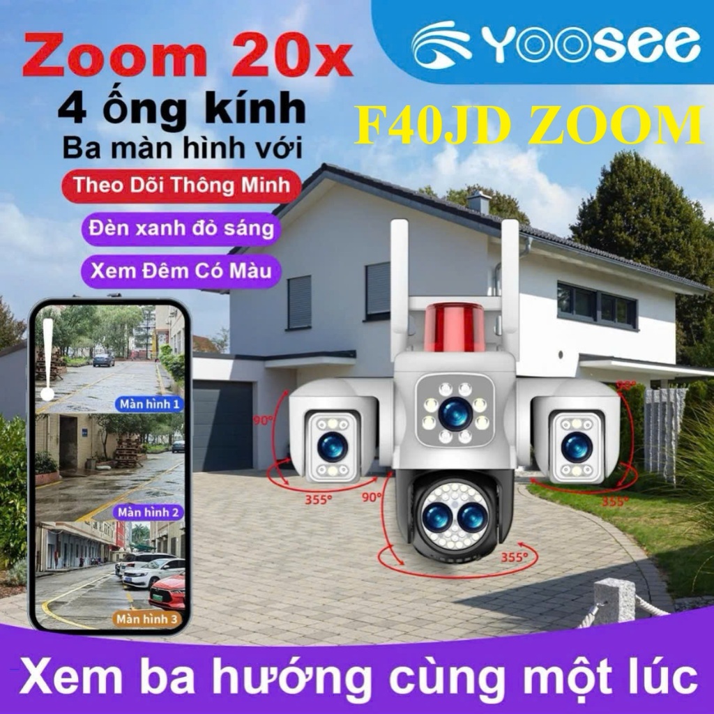 Mô tả sản phẩm Camera YooSee 2 mắt – chuẩn 4.0mpx siêu nét góc rộng, ban đêm xem có màu, đàm thoại 2 chiều, camera kép xem cùng lúc trên 1 điện thoại xoay 360 độ