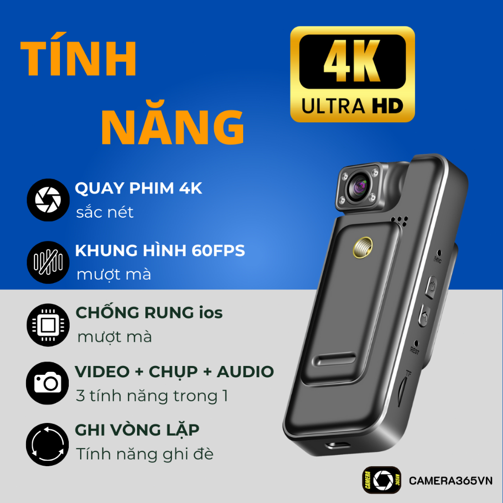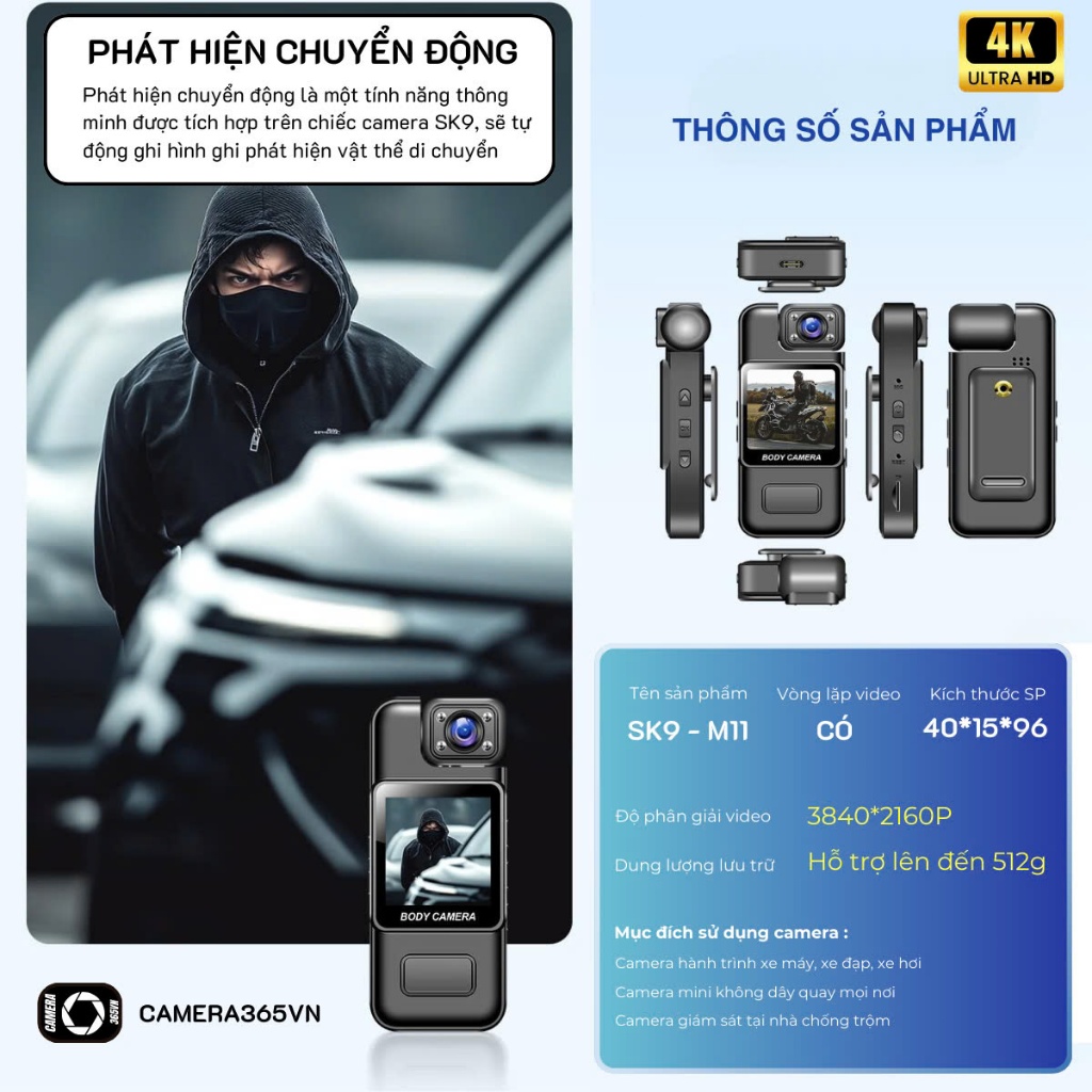 Camera mini 3in1 (quay,chụp,ghi âm) có wifi 4K-60fps SK9