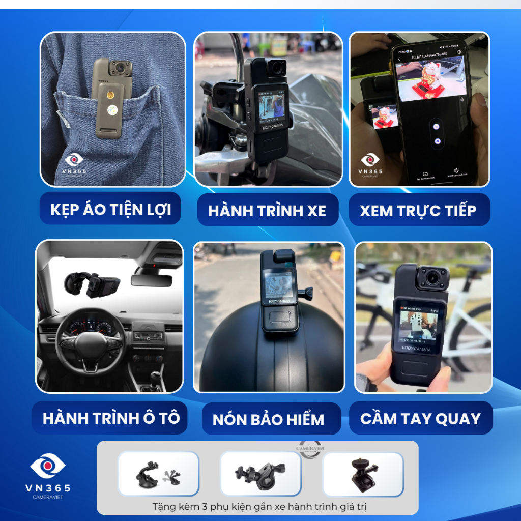 = 3 Món phụ kiện gắn ( xe đạp, xe máy, bàn làm việc, nón bảo hiểm….)