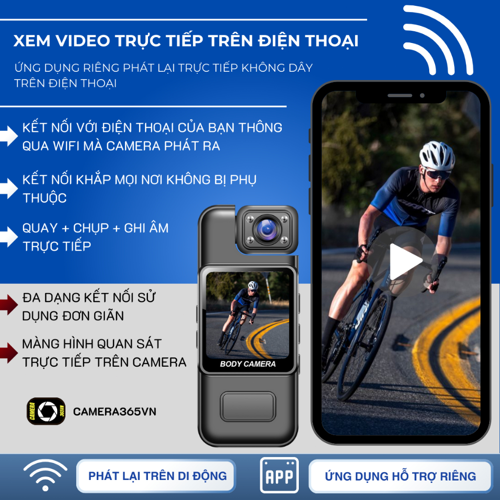 *Chức Năng : Kết nối với điện thoại thông qua ứng dụng kết nối – hoặc kết nối trực tiếp với máy tính để tải video