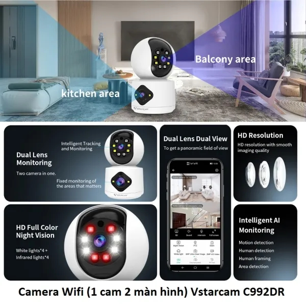 Camera Wifi 2 Màn Hình Vstarcam C992DR. Gitx3