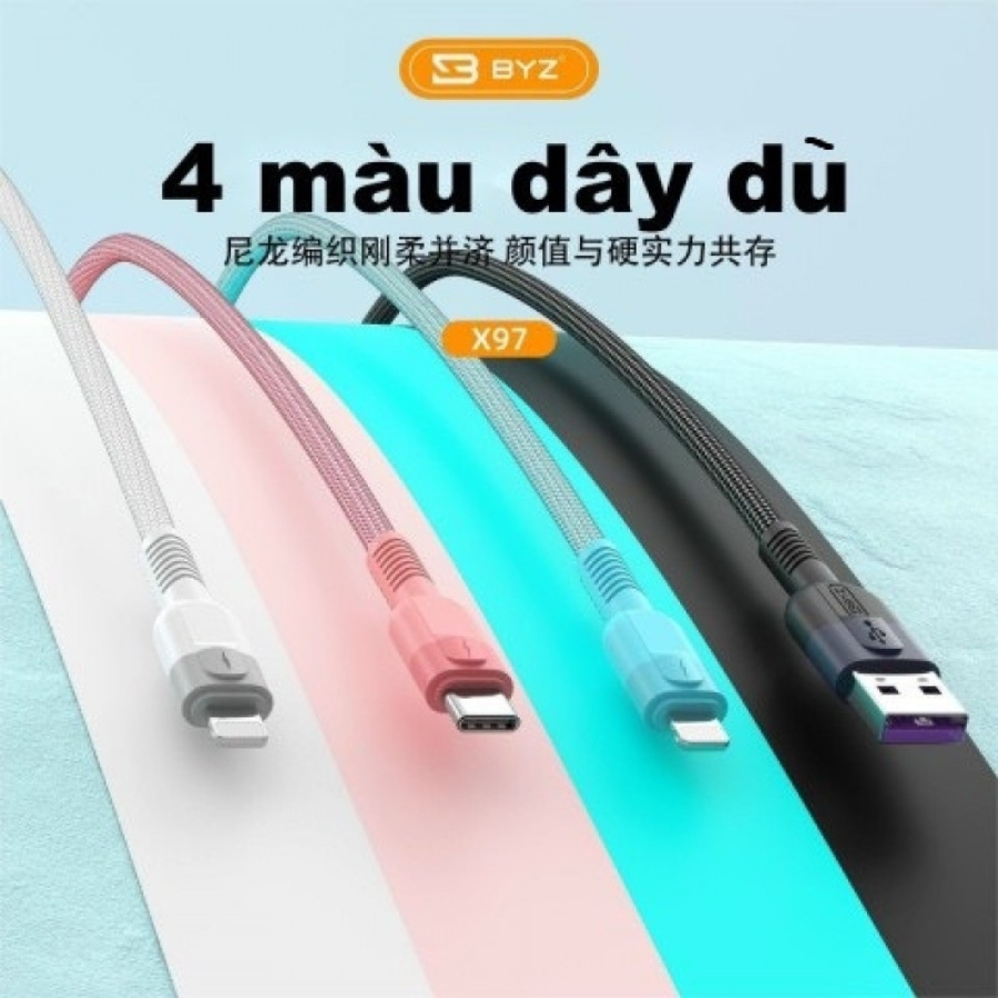 Cáp sạc Byz X97 dây bện dù, dòng cao 6A/20W
