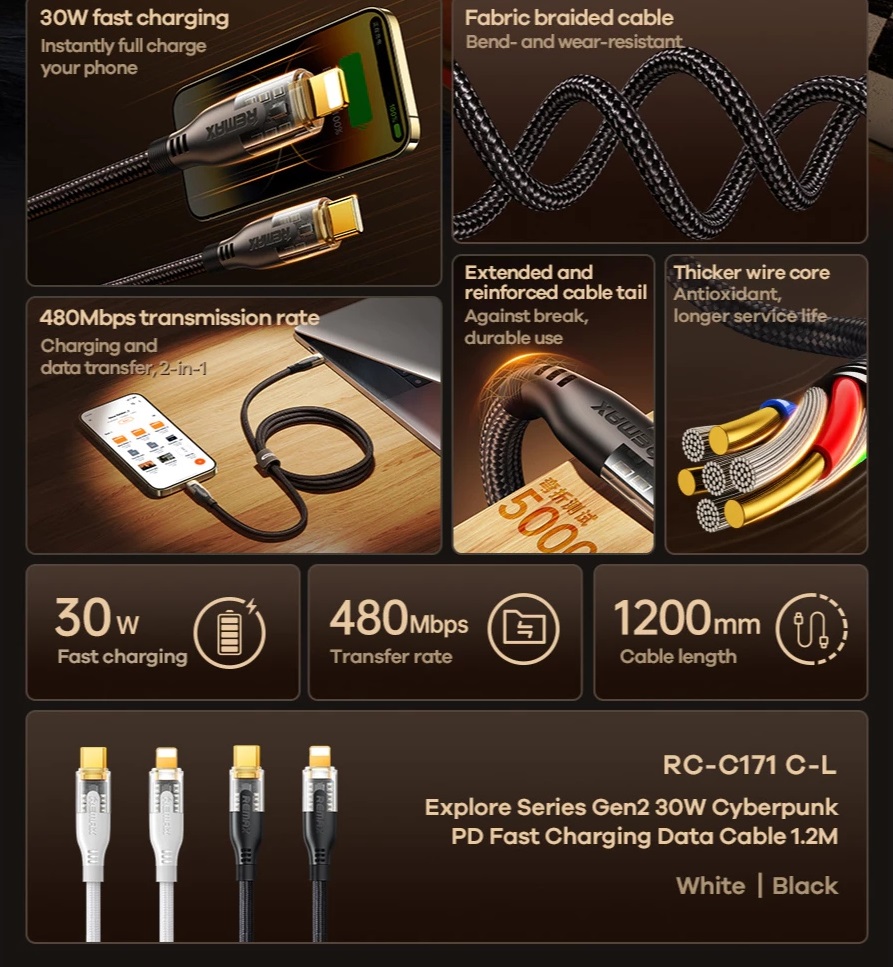 Cáp Sạc Nhanh 30W Remax RC-C171 Type-c Ra Lightning