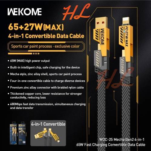Cáp Sạc Nhanh 65W 4 đầu 4in1 Wekome WDC-25