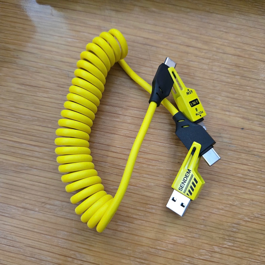 Dây Sạc 4 Trong 1 Thiết Kế LÒ XO Kéo Dài 1.5M, Sạc Nhanh Chuẩn PD C – L 27W,C-C 65W, Copy Dữ Liệu