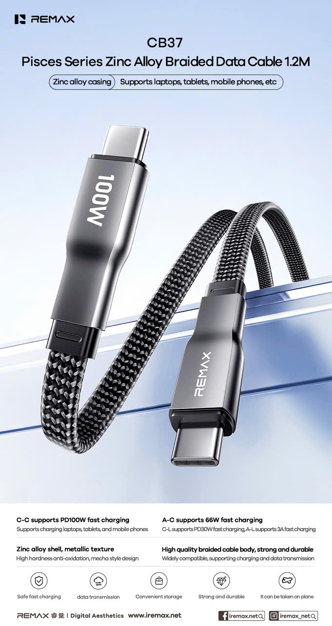 Cáp sạc nhanh 66W Remax CB37 (A-C) USB ra type-c