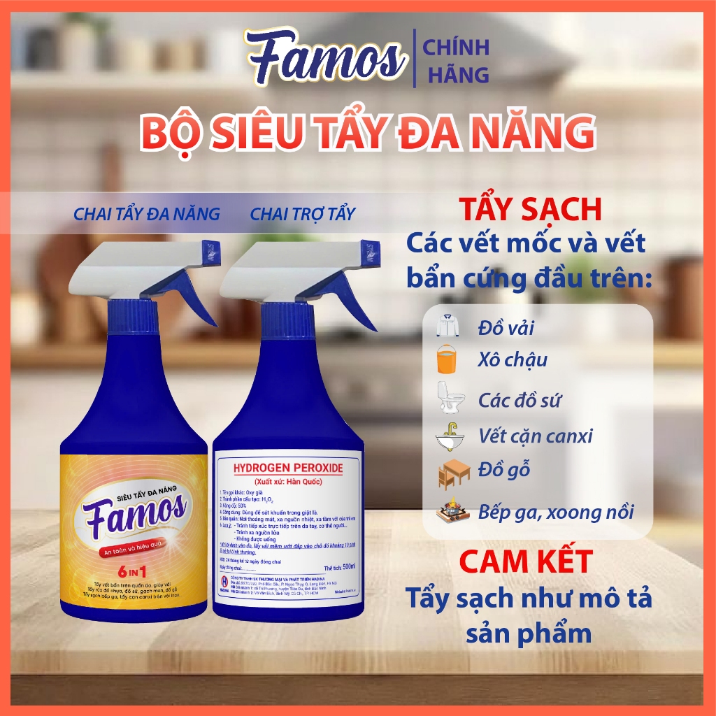 • Tên sản phẩm: Bộ Siêu Tẩy Đa Năng Famos 6in1 tẩy vết mốc ,cặn canxi, vết bẩn cứng đầu
