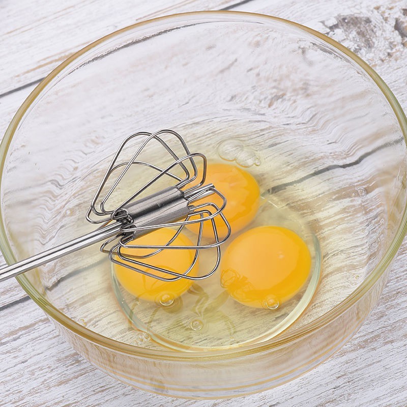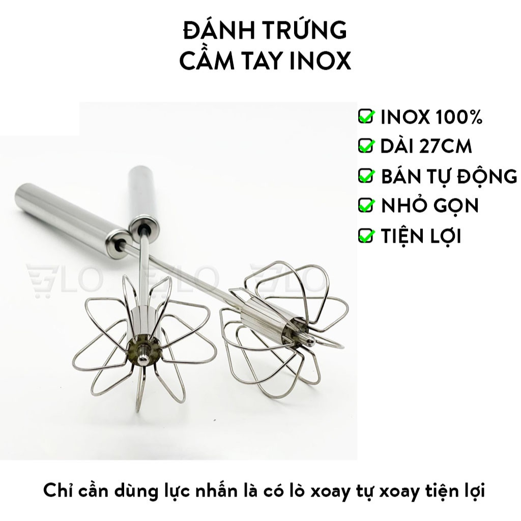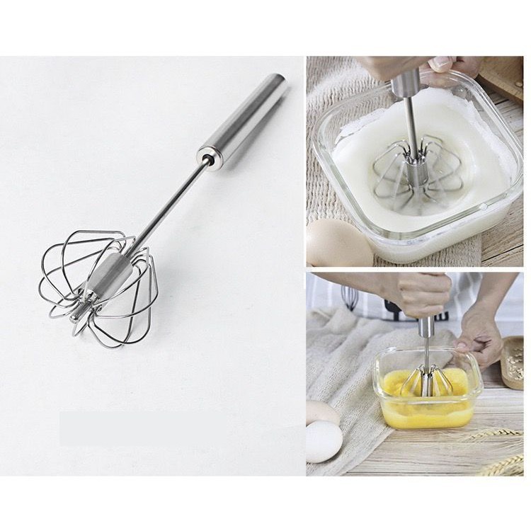 Máy đánh trứng cầm tay bán tự động thông minh, Cây phới lồng tròn đánh trứng thép không gỉ inox 304 có trục xoay