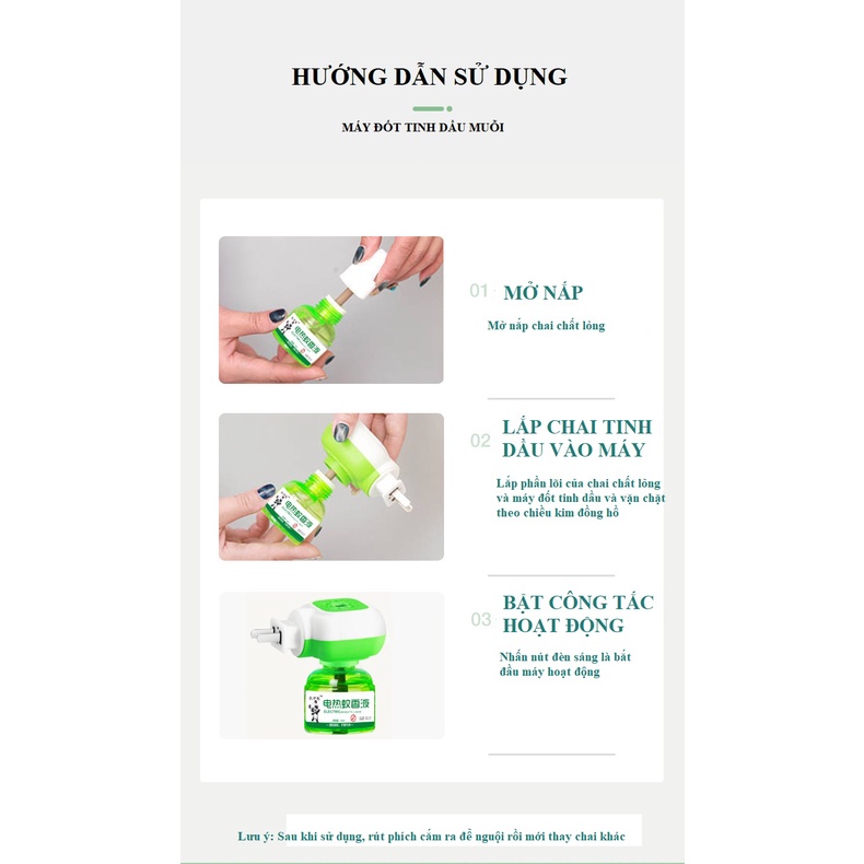 - Chai tinh dầu đuổi muỗi được sản xuất bằng công nghệ tiên tiến, dùng an toàn đuổi muỗi hiệu quả. Lọ tinh dầu đuổi muỗi dùng cho cả máy đuổi muỗi/thiết bị đuổi muỗi