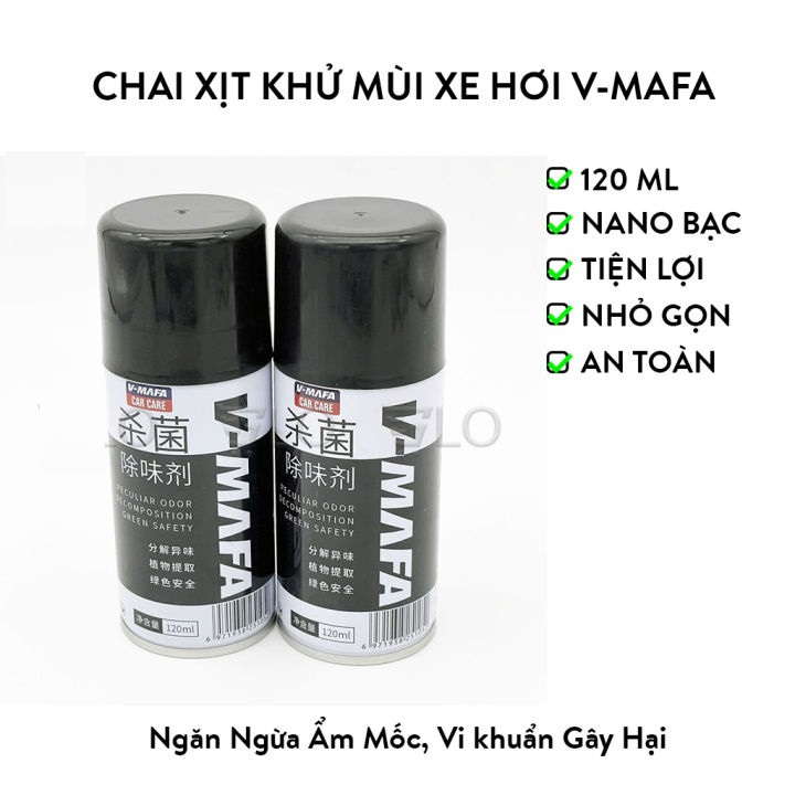 Chai xit khử mùi xe hơi V-MΛFA có khả năng khử mùi, kháng khuẩn và diệt khuẩn hiệu quả. Nano Bạc tấn công các vi khuẩn tạo mùi làm mất mùi. Tái tạo không khí trong lành, ngăn ngừa nấm mốc, vi khuẩn
