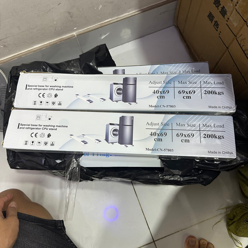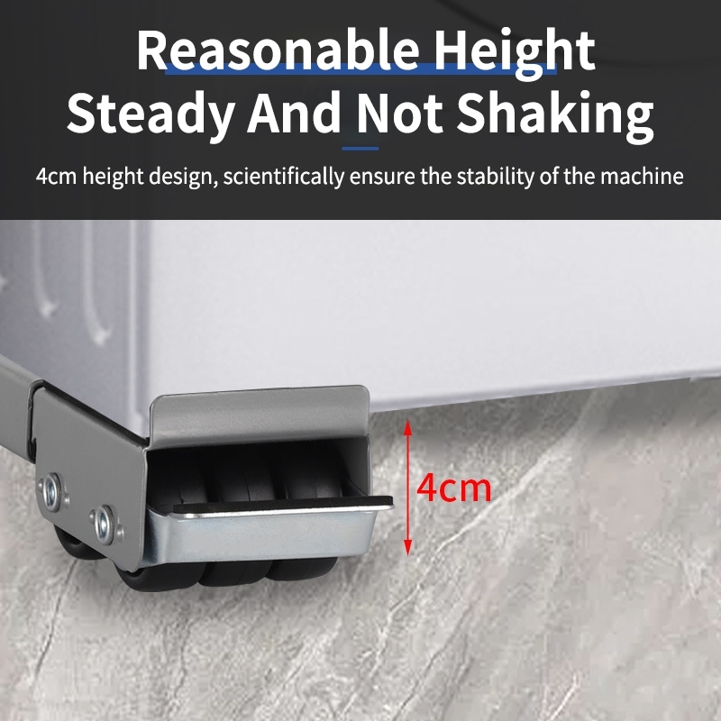 - Chân đế có thể điều chỉnh độ cao, rộng cho phù hợp với tủ lạnh, máy giặt nhà bạn.