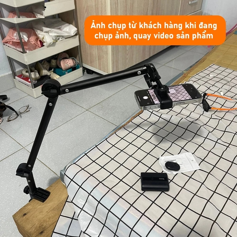3. Đầu kẹp điện thoại, ipad linh hoạt, kéo ra là sử dụng được ngay