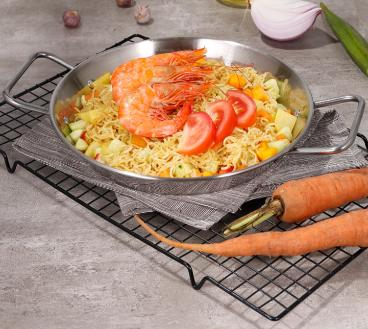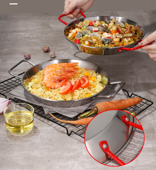 4. [Tay cầm ổn định] Chảo paella này có tay cầm kép, được thiết kế với cảm giác thoải mái và chống nóng. Đinh tán gia cường tăng tính bền.
