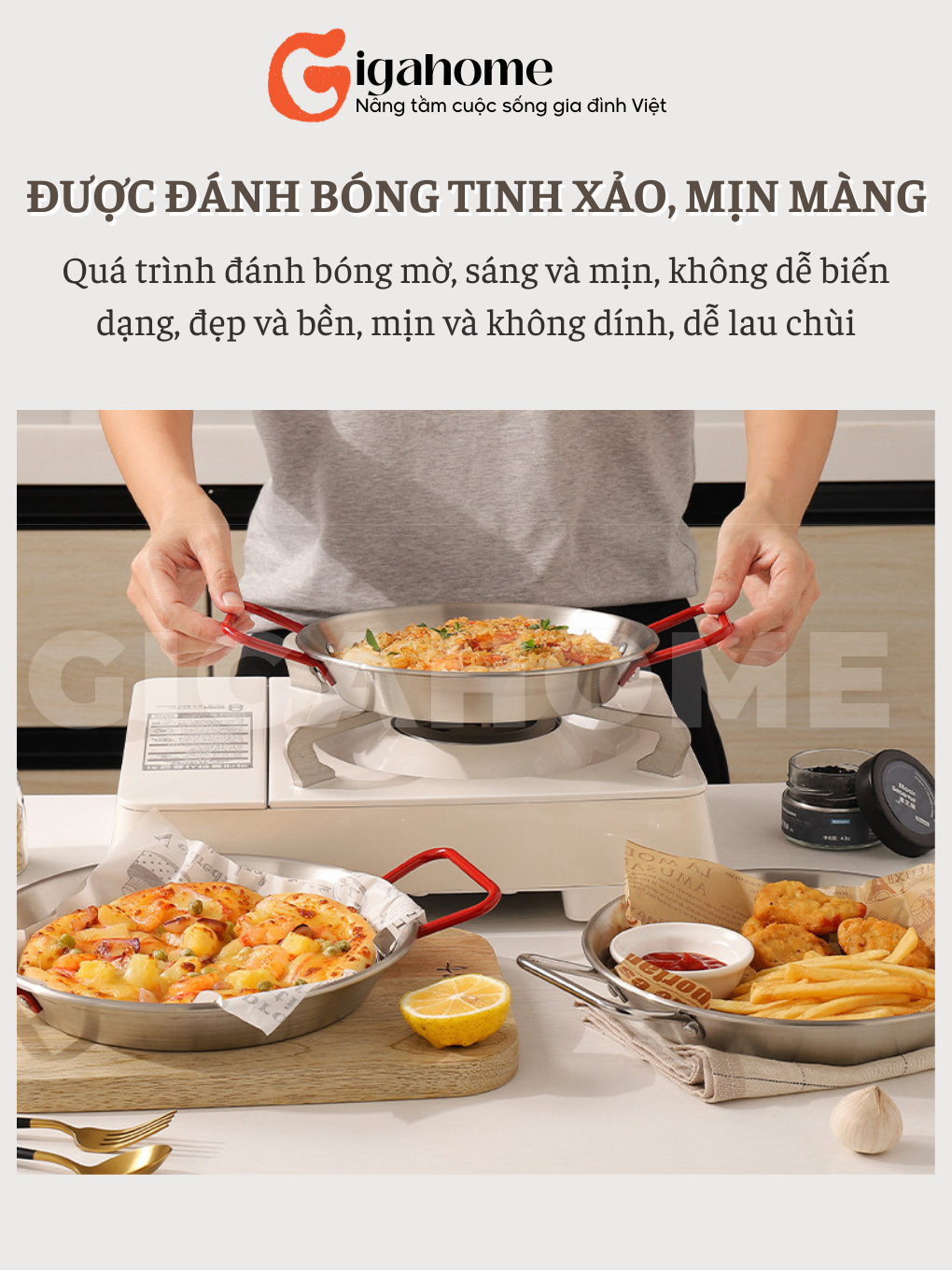 2. [Đáy phẳng] Chảo hải sản có đáy phẳng, đảm bảo sự truyền nhiệt đều và ổn định. Cấu trúc bề mặt tinh tế giúp dễ lau chùi.