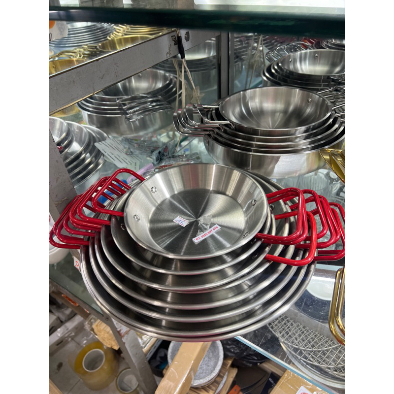 Chảo inox Hàn Quốc Paella hải sản quai đỏ 26cm///HB. Trùng Mã