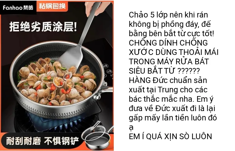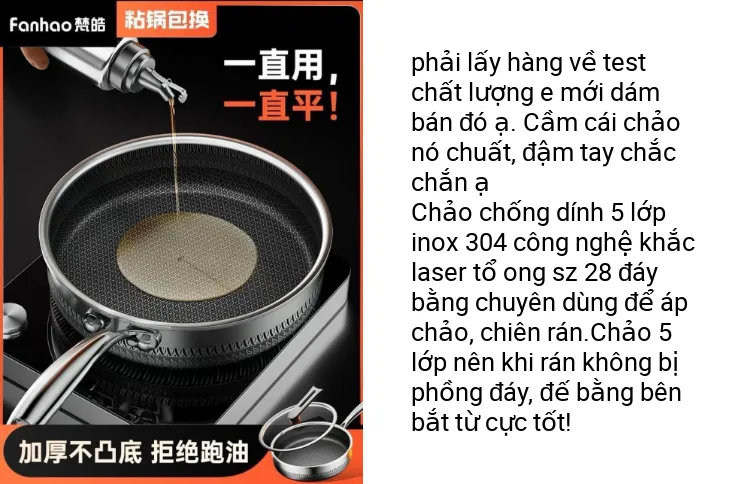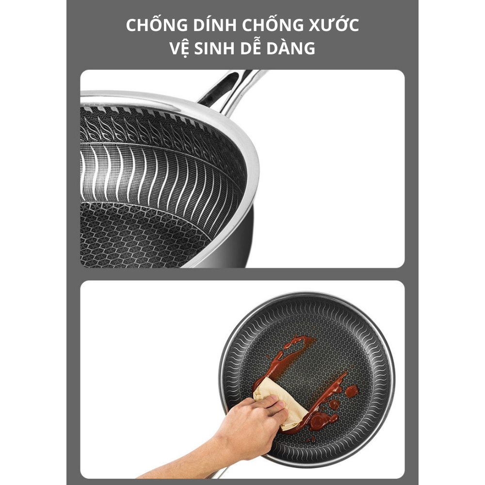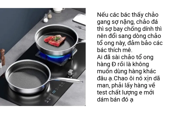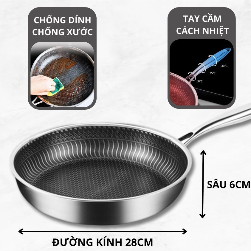 Mô tả sản phẩm Chảo tổ ong chống xước,chảo chống dính 5 lớp inox 304 dùng cho mọi loại bếp