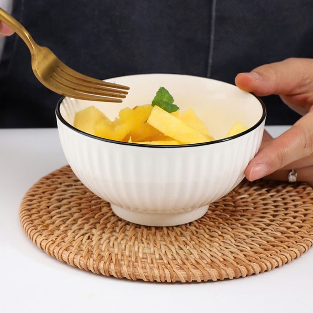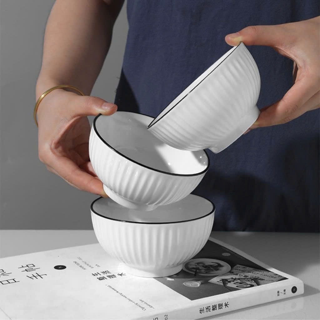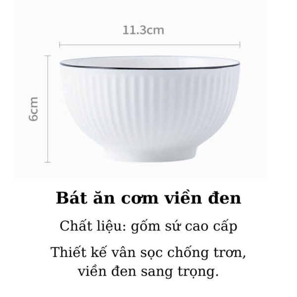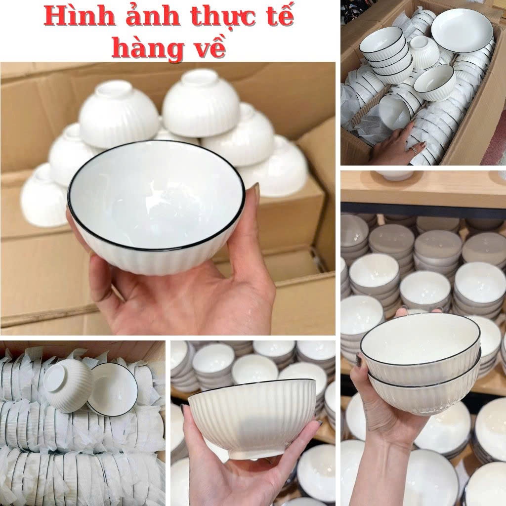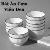 Bát ăn cơm viền đen Chén sứ ăn cơm vân sọc viền đen decor bàn ăn gốm sứ cao cấp chịu nhiệt