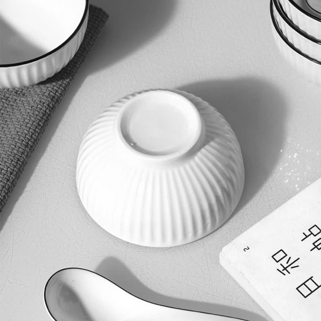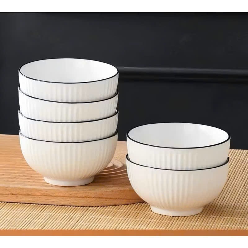 1 Chén/ Bát ăn cơm Sứ Sọc Trắng Trơn Viền đen 11,3x6cm