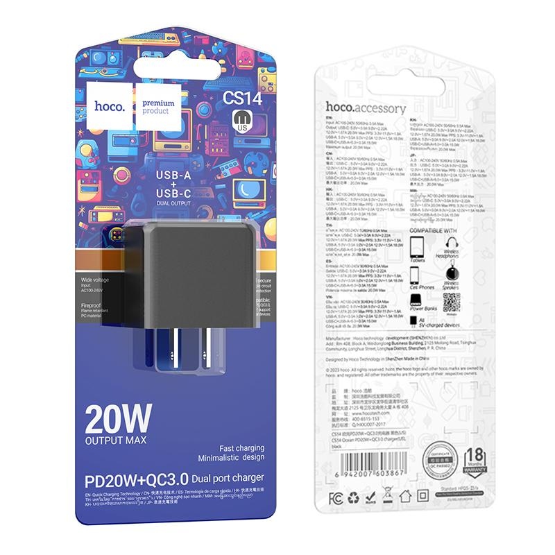 Cóc Sạc Nhanh 30W/ 20W/ 18W=3.0A/ 2.1A Hoco CS15/ CS14/ CS13/ CS12/ CS11///DL