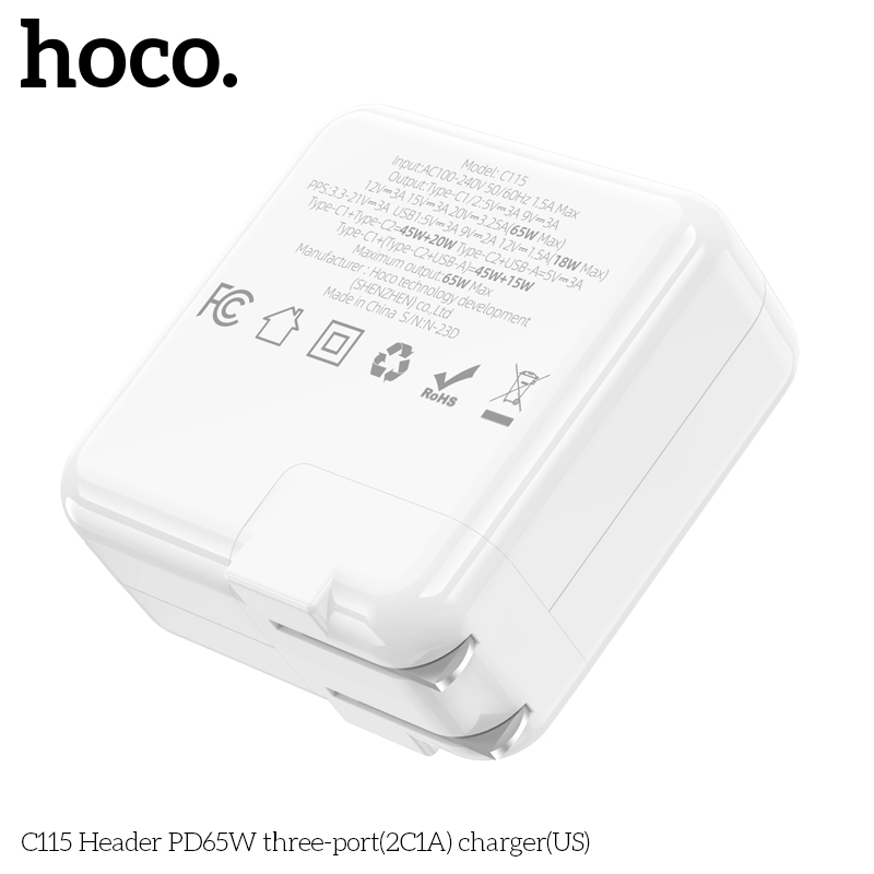 USB-A:18W(QC/FCP/AFC); Type-C1+Type-C2=45W+20W; Type-C2+USB-A=5V/3A; Type-C1+(Type-C2+USB-A)= 45W+15W