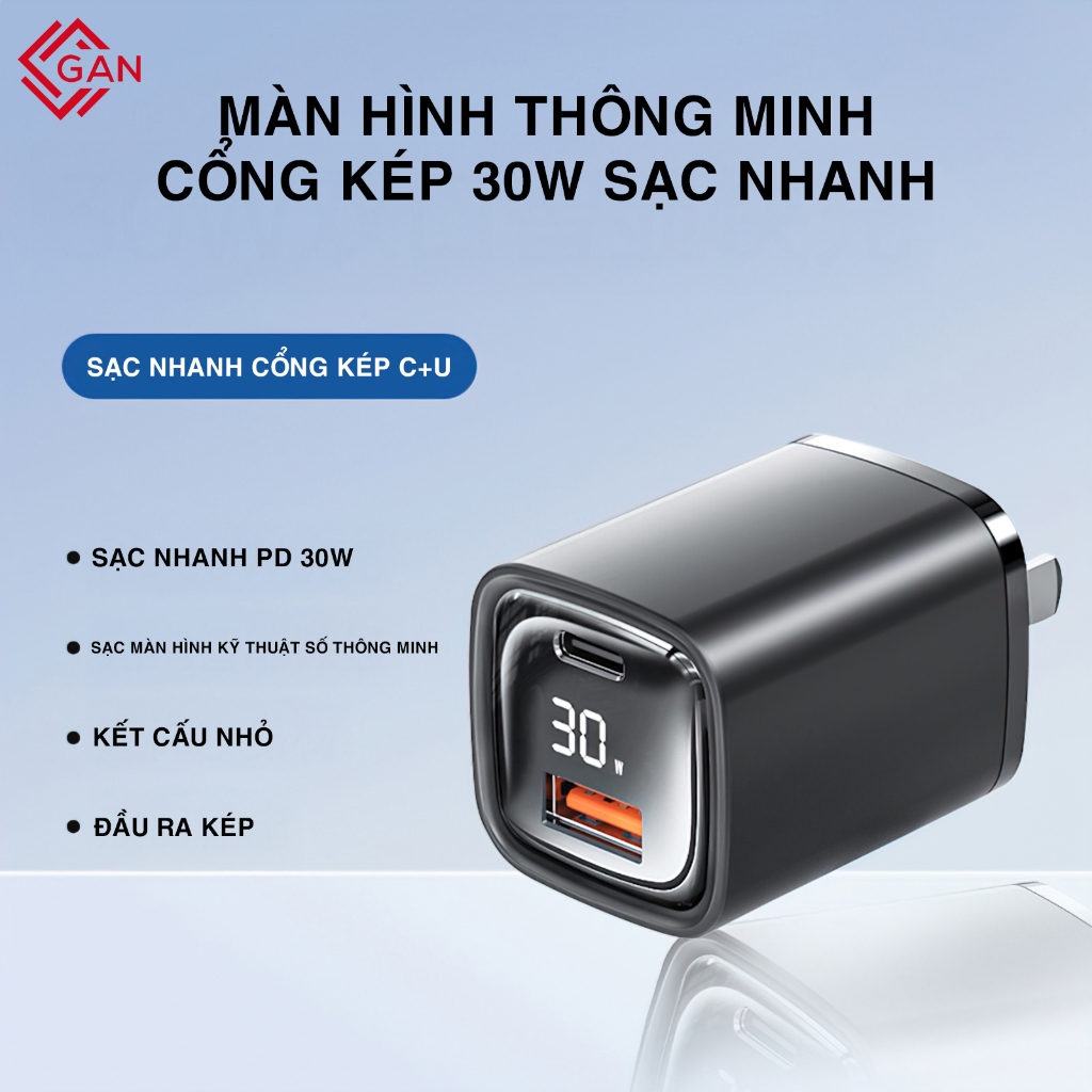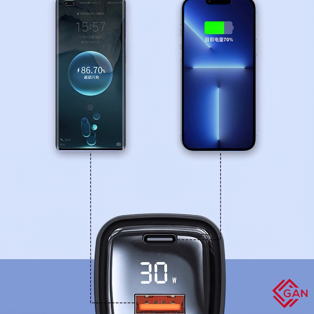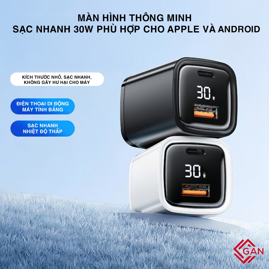 Củ Sạc Điện Thoại Công Nghệ GaN Hỗ Trợ PD QC 30W – Màn Hình LED Hiển Thị Công Suất Đầu Ra, Sạc Nhanh, Tiết Kiệm Năng Lượng
