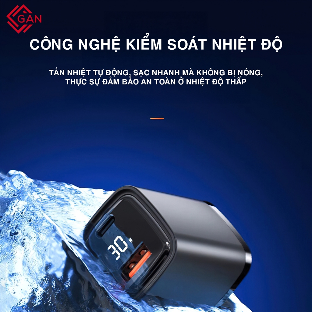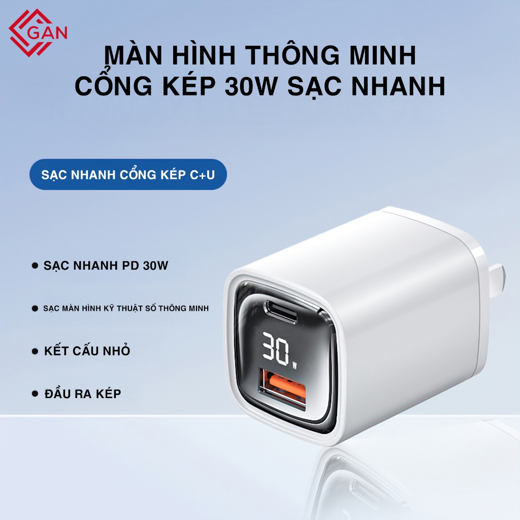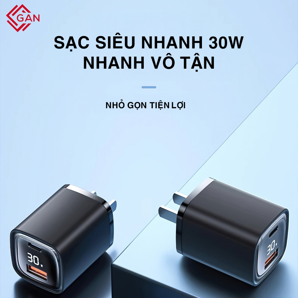 Củ Sạc Điện Thoại Công Nghệ GaN Hỗ Trợ PD QC 30W – Màn Hình LED Hiển Thị Công Suất Đầu Ra, Sạc Nhanh, Tiết Kiệm Năng Lượng