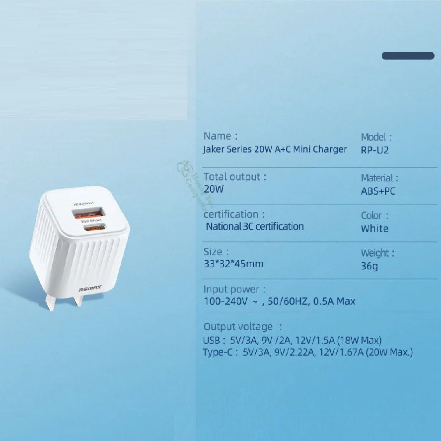 Giảm ₫71,000] Củ sạc điện thoại remax rp-u2 sạc nhanh 20w tích hợp 2 cổng sạc nhanh pd type c + usb thiết kế nhỏ gọn - tháng 6/2023 - BeeCost