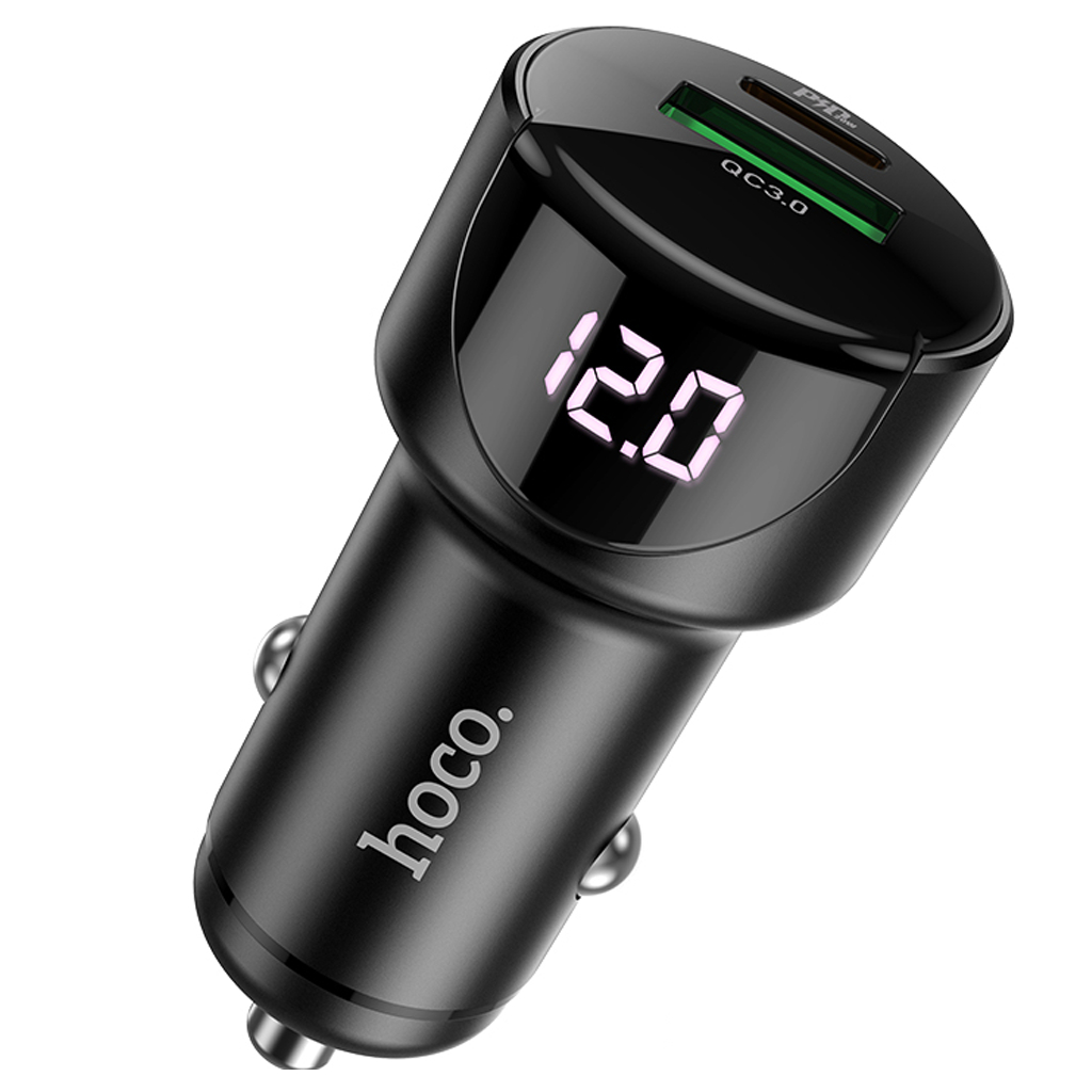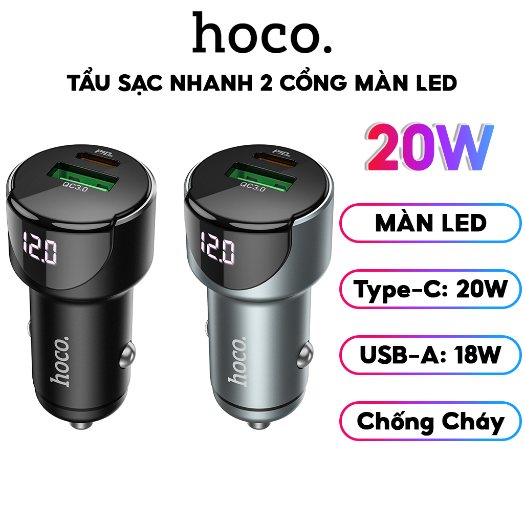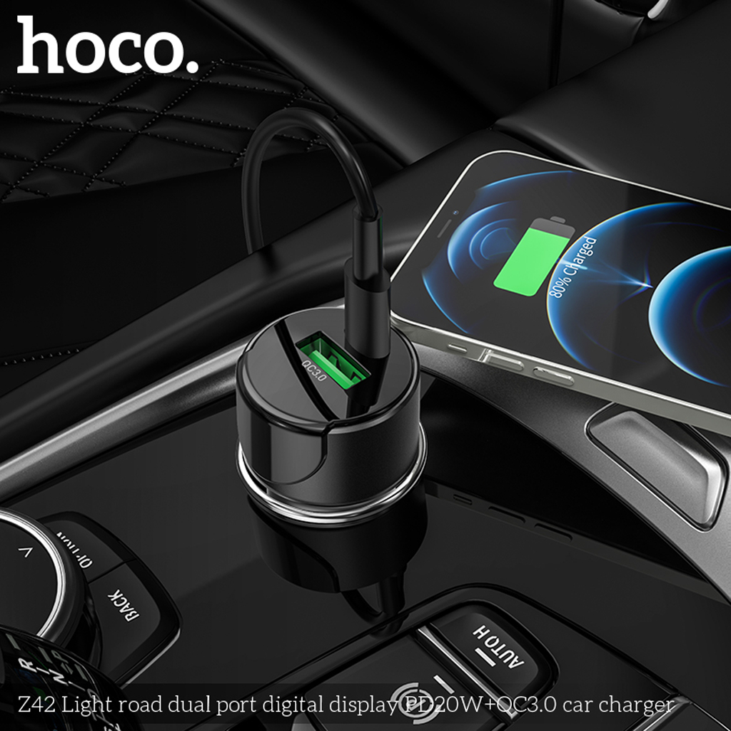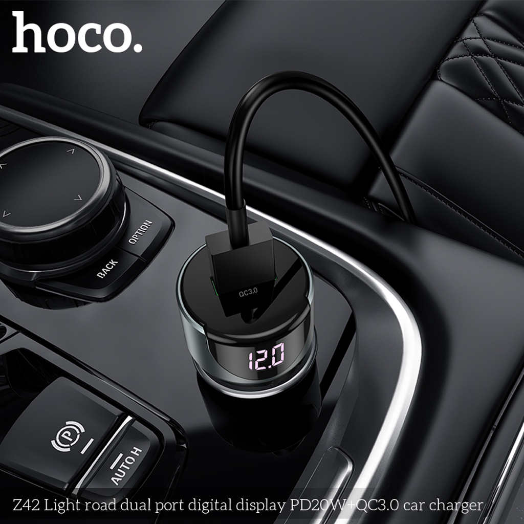 ✦ Tẩu sạc nhanh ô tô Chính Hãng HOCO Z42 sạc điện thoại trên xe hơi, đầu ra USB QC3.0 18W và Type-C PD 20W, màn hình LED