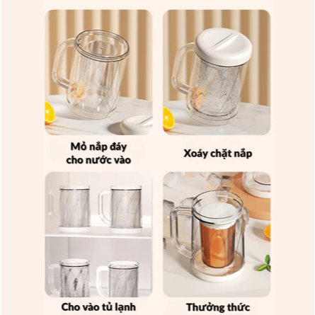 – Cốc uống nước tự làm mát với 2 lớp riêng biệt, có thể tự làm đá, làm lạnh cho đồ uống mà không cần bỏ trực tiếp đá vào giúp đồ uống giữ nguyên hương vị, không bị tan đá