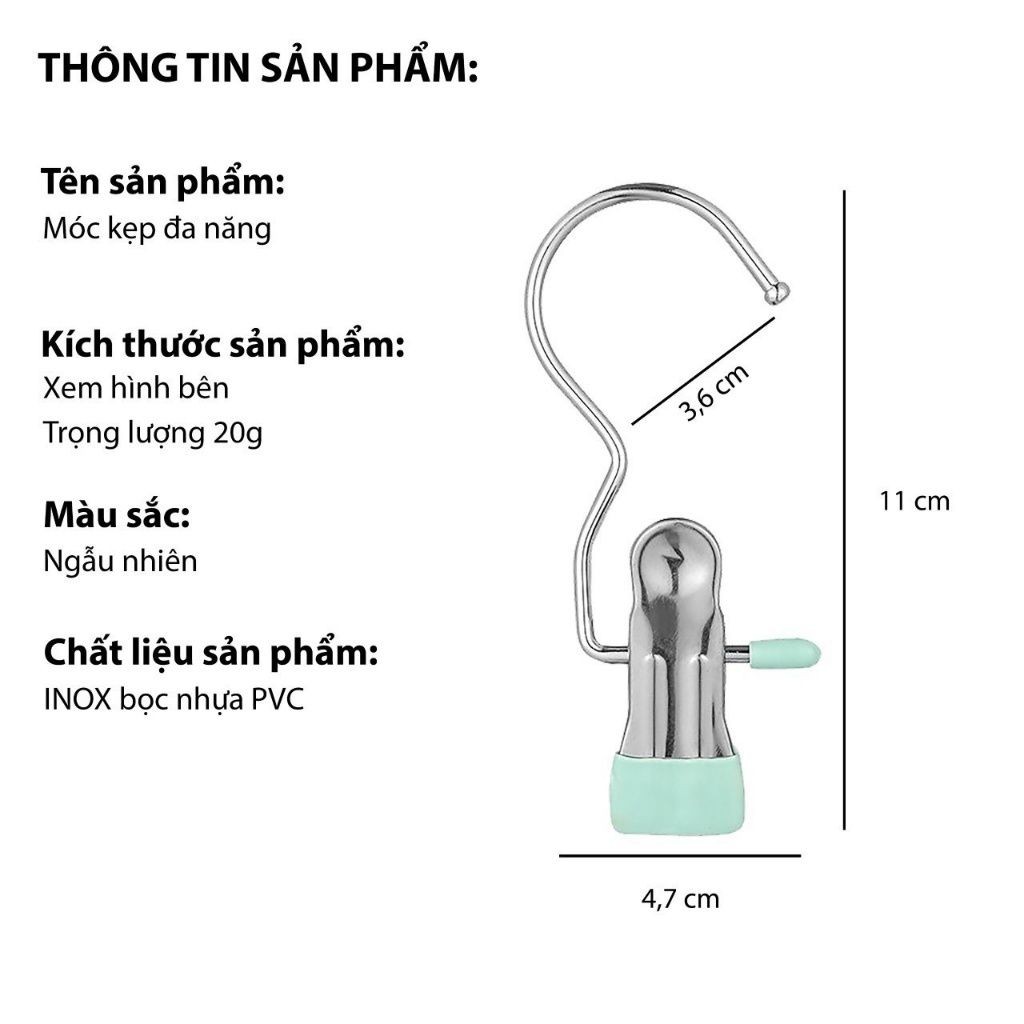-Chất liệu: Inox đầu kẹp phủ nhựa PVC