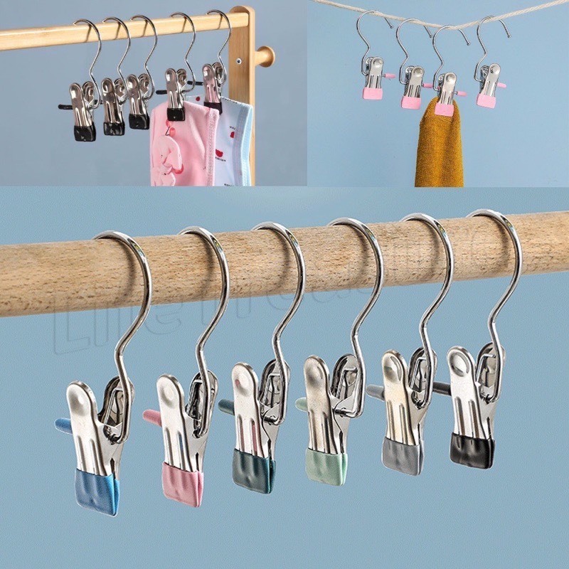 Combo 10 Móc Kẹp Đơn Inox Treo Quần Áo ,Mũ, Nón ,Tất, Vớ