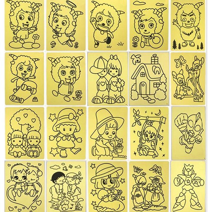 🔹 Tranh cát trẻ em được in, cắt trên khổ giấy với rất nhiều mẫu từ hoa, lá, đồ vật, hình ảnh hoạt hình,…giúp bé nhận biết và vui đùa với màu sắc