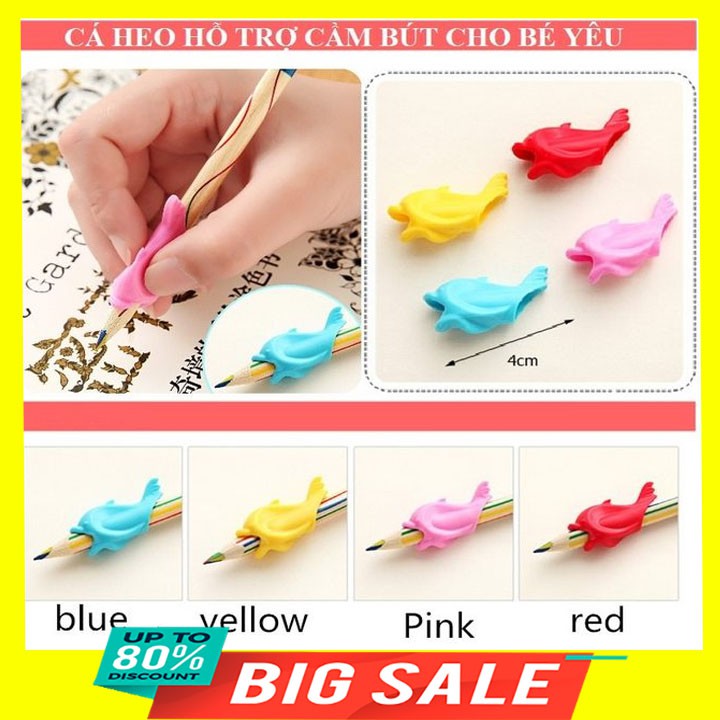 Cá heo được thiết kế 3 vị trí để đặt ba ngón tay xinh xinh lên đó, không thể lệch đi đâu được, bé cầm viết có gắn cá heo chỉ cần 2 tuần, là tay sẽ quen tư thế cầm viết chuẩn đét, lúc này không cần cá heo nữa cầm viết gì cũng đúng tư thế hết các mẹ ạ,  ngày xưa người lớn chúng ta không được hướng dẫn chu đáo, bây giờ khối người lớn chúng mình cầm viết vẫn sai tư thế,  vậy còn chờ gì nữa mà phụ huynh không mua cá heo về cho bé.