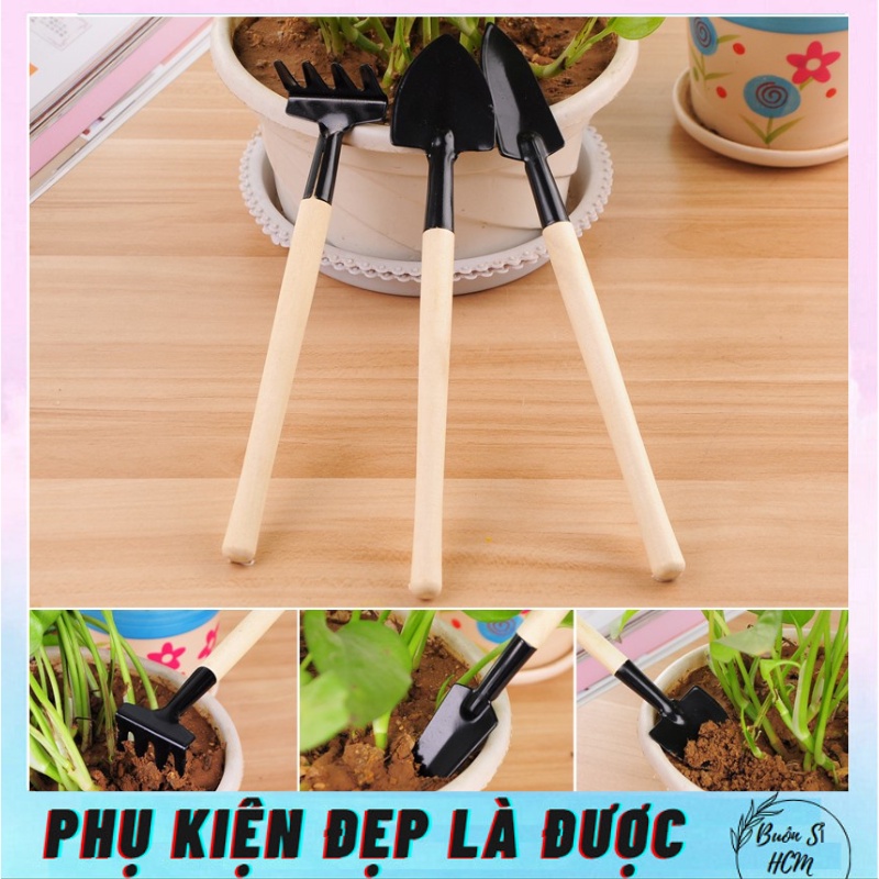 Bộ cuốc xẻng làm vườn mini, giúp bạn và bé có những giờ làm vườn thoải mái, giúp bé phát triển kĩ năng và tư duy qua những hoạt động thực tiễn. Chất liệu: cán gỗ + lưỡi bằng thép.