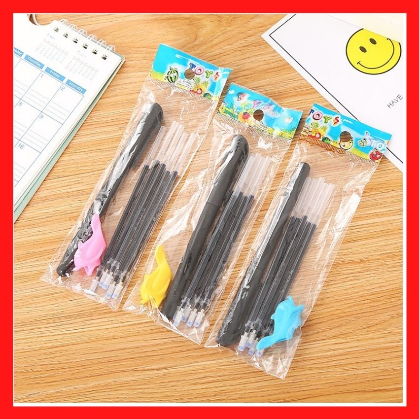 Combo Bút Tự xóa thần kỳ, 1 bịch gồm 5 ngòi, 1 đệm bút và 1 vỏ bút.