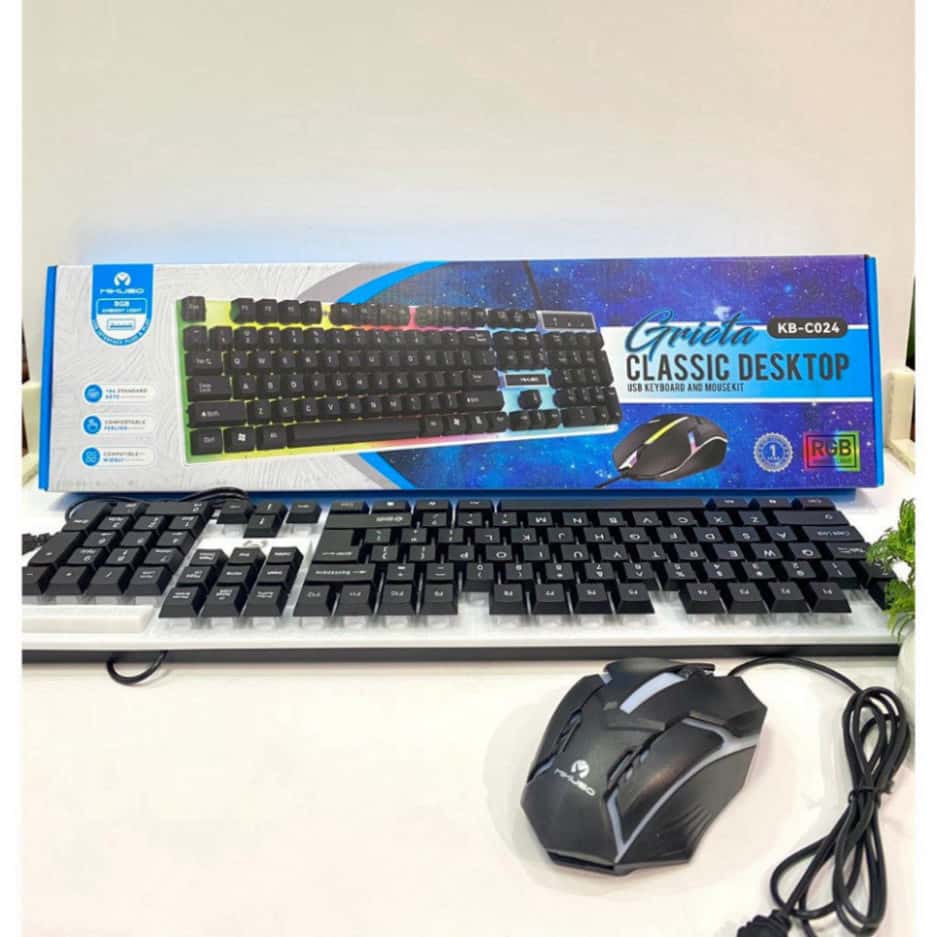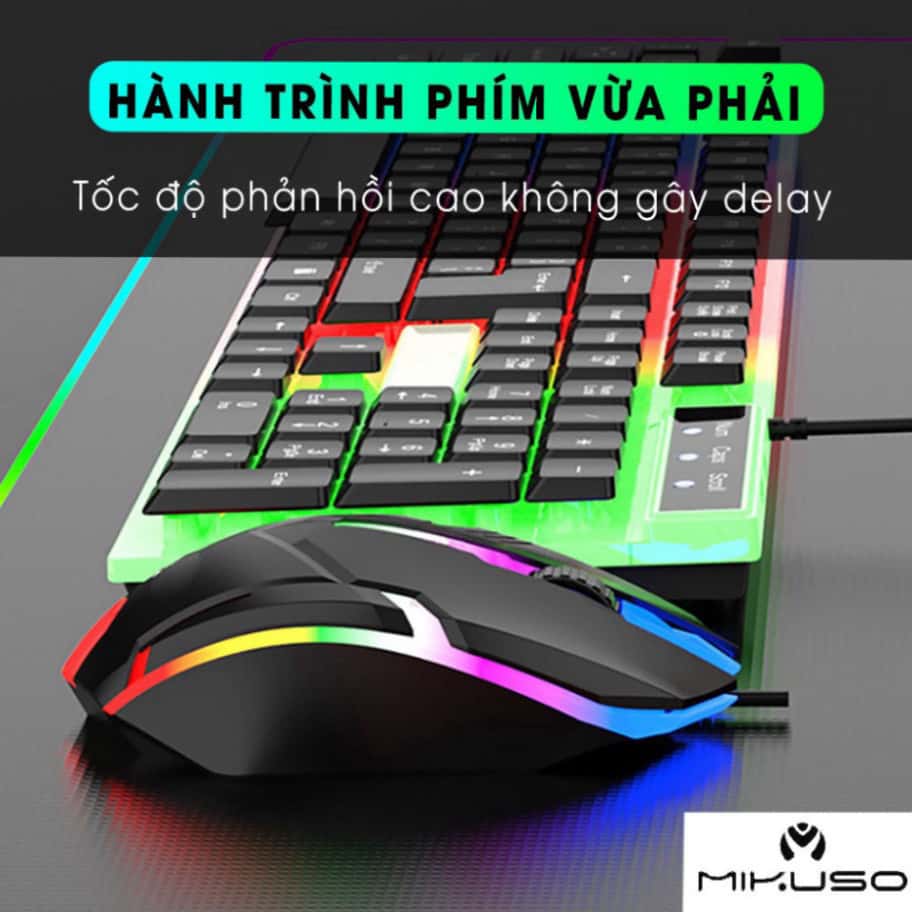 Bàn phím máy tính có dây gaming MIKUSO KB-C024 giả cơ chống nước led rgb chơi game làm việc văn phòng cho PC laptop: