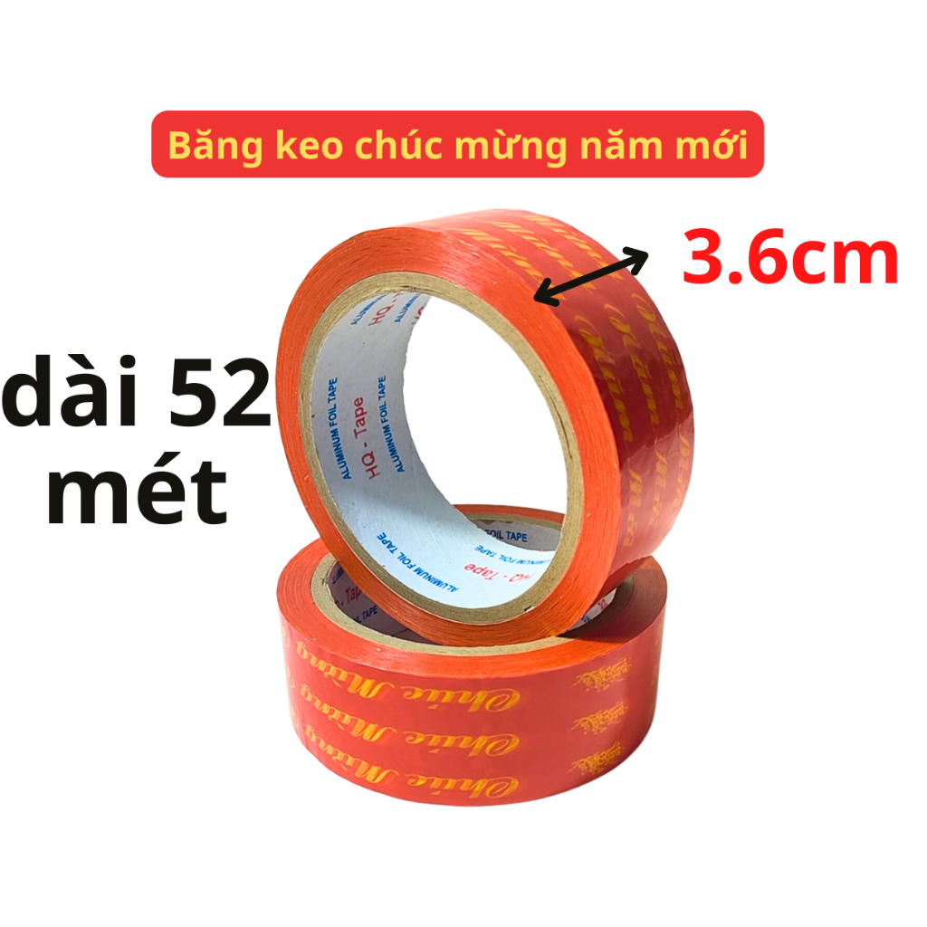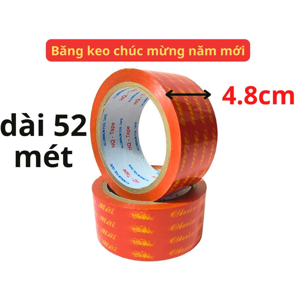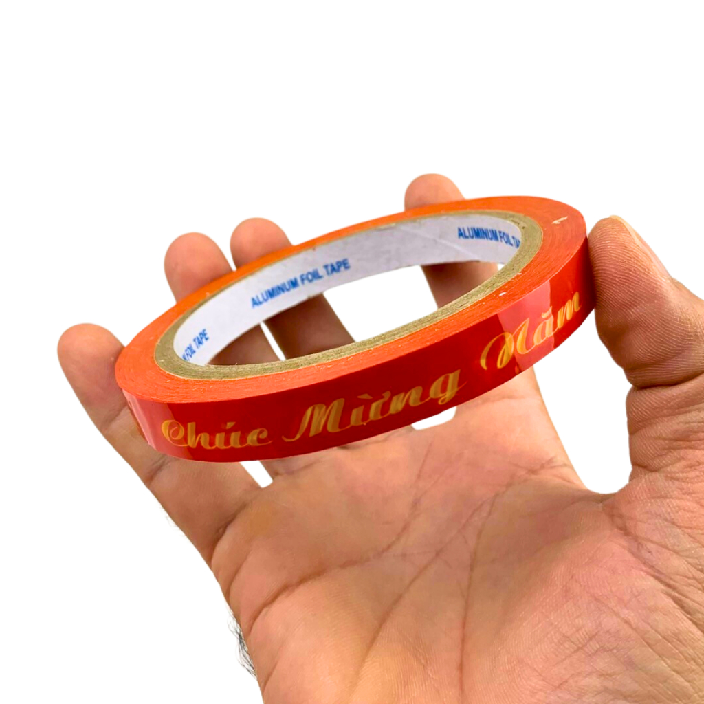 Băng keo chúc mừng năm mới là sản phẩm không thể thiếu để trang trí đồ đạc trong dịp Tết. Với chiều rộng 1.2cm dài 20 mét hoặc rộng 2.4cm dài 52 mét, sản phẩm có thể phù hợp với nhiều mục đích sử dụng khác nhau.