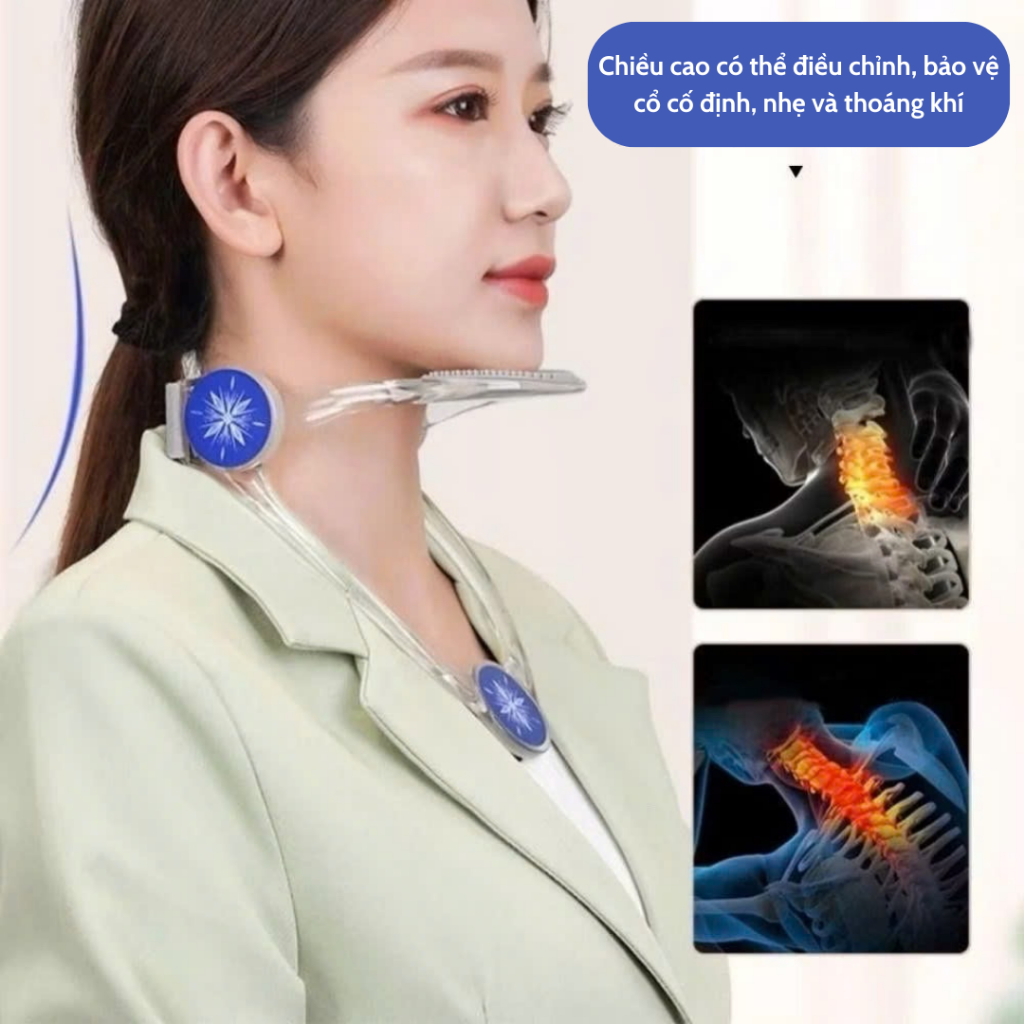 Đai hỗ trợ bảo vệ cổ hồng giúp cố định và bảo vệ vùng cổ hiệu quả, giảm mỏi, hạn chế chấn thương khi vận động hoặc lao động, thiết kế trong suốt tiện dụng.