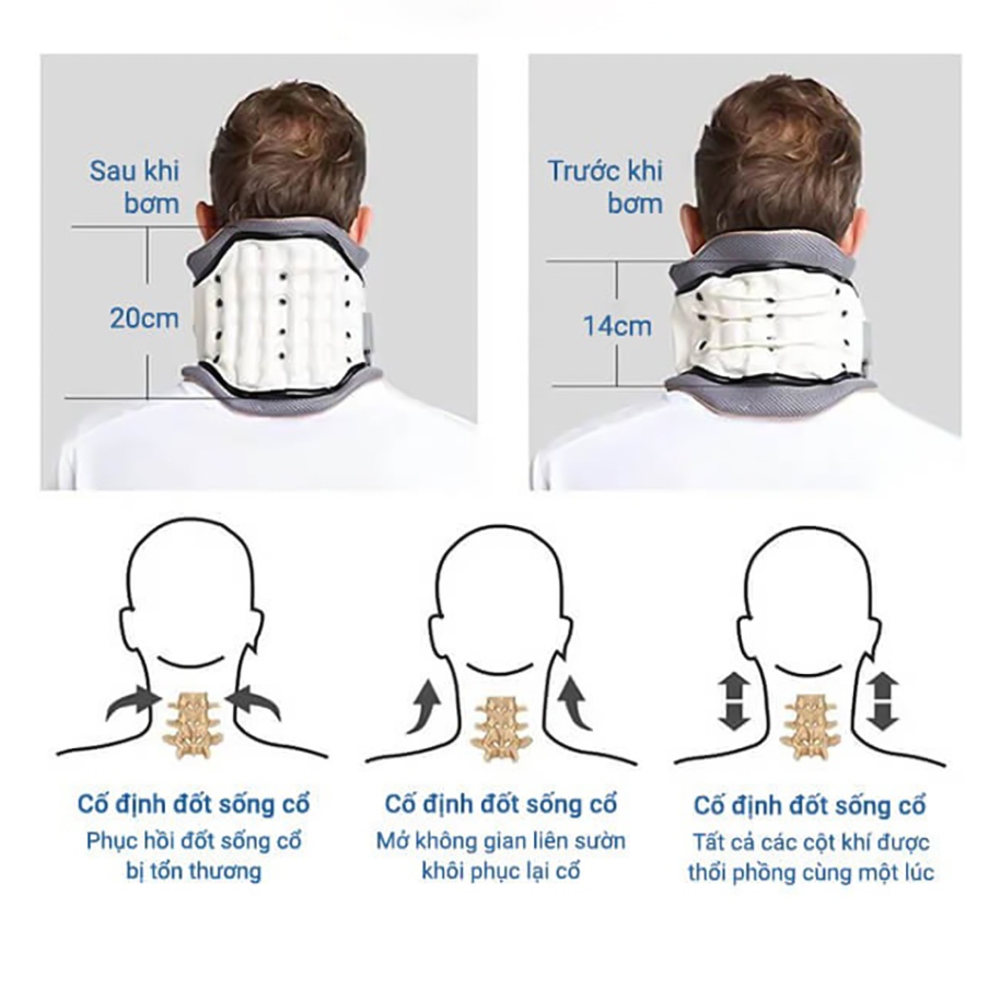 ✅Các múi hơi và cột khí được bố trí đều tạo lực kéo 3 chiều giúp kéo dãn vùng cơ và các đốt sống cổ, giải phóng chèn ép hiệu quả.