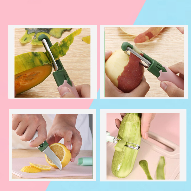 **** Dao bào gọt rau củ 2 đầu 2in1, nút nhấn màu sắc trang nhã mang đi du lịch tiện lợi ****