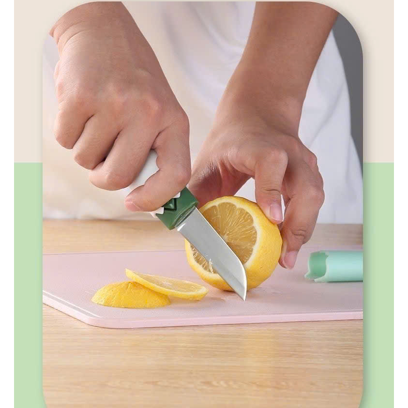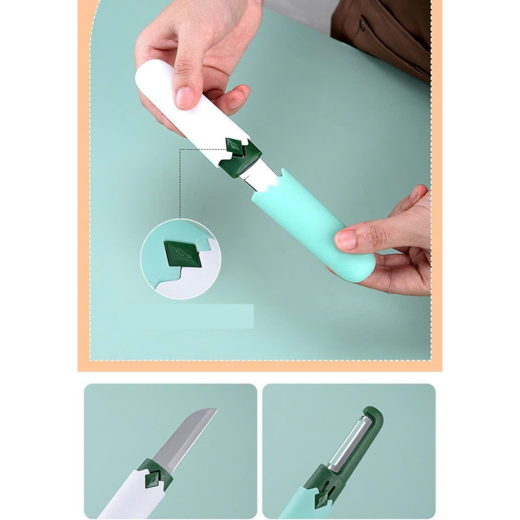 * Nút hình chữ nhật có thể được chuyển đổi giữa các lưỡi dao khác nhau và cố định bằng nút hình chữ nhật. Đầu lưỡi dao được thiết kế xoay 360 độ, giúp bạn dễ dàng gọt bất kỳ loại trái cây hay rau củ nào.