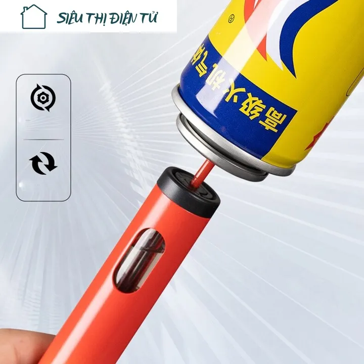Bút khò gas có thể tăng giảm mức nhiệt bằng cách xoay núm vặn phía dưới đui bút khò.