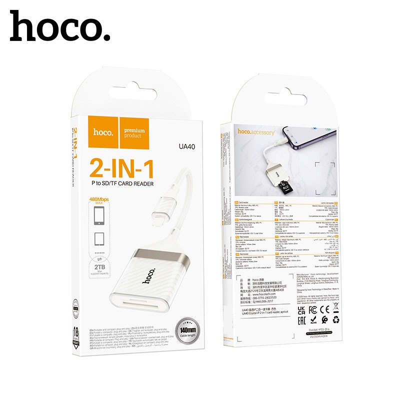 Đầu đọc đa năng: Đầu đọc thẻ 2 trong 1 Hoco UA40 Crystal, thiết kế nhỏ gọn, tiện lợi.