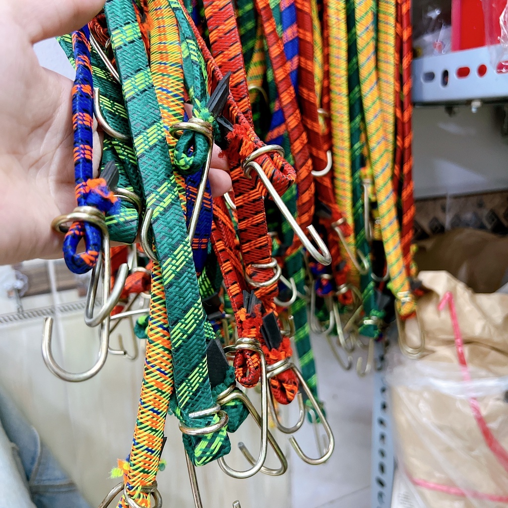 Dây Chun Chằng Đồ Có Móc Nhiều Màu được sử dụng trong việc chằng buộc hàng hóa một cách chắc chắn và dẻo dai.
