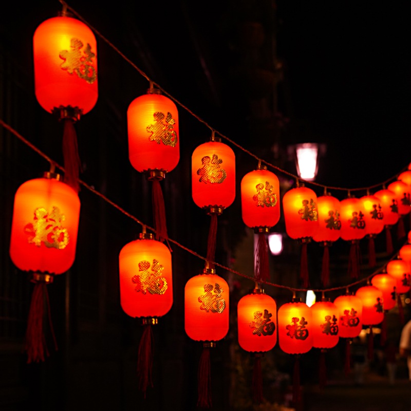 – Kích thước SP: Dây dài 5m gồm 12 cái lồng đèn đỏ, KT mỗi đèn lồng: 6x10cm, mỗi đèn được thắp sáng bởi 1 bóng đèn Led