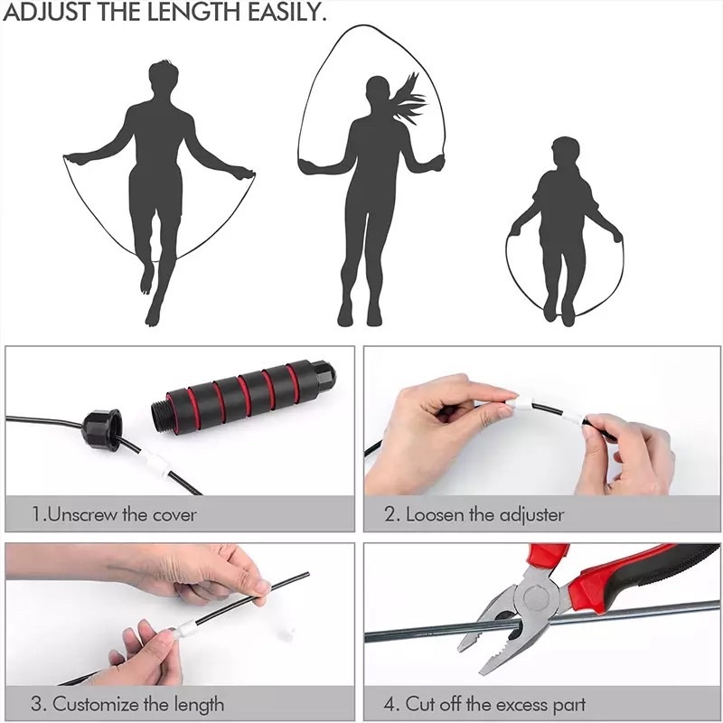 – Dây có thể điều chỉnh chiều dài phù hợp với chiều cao người nhảy