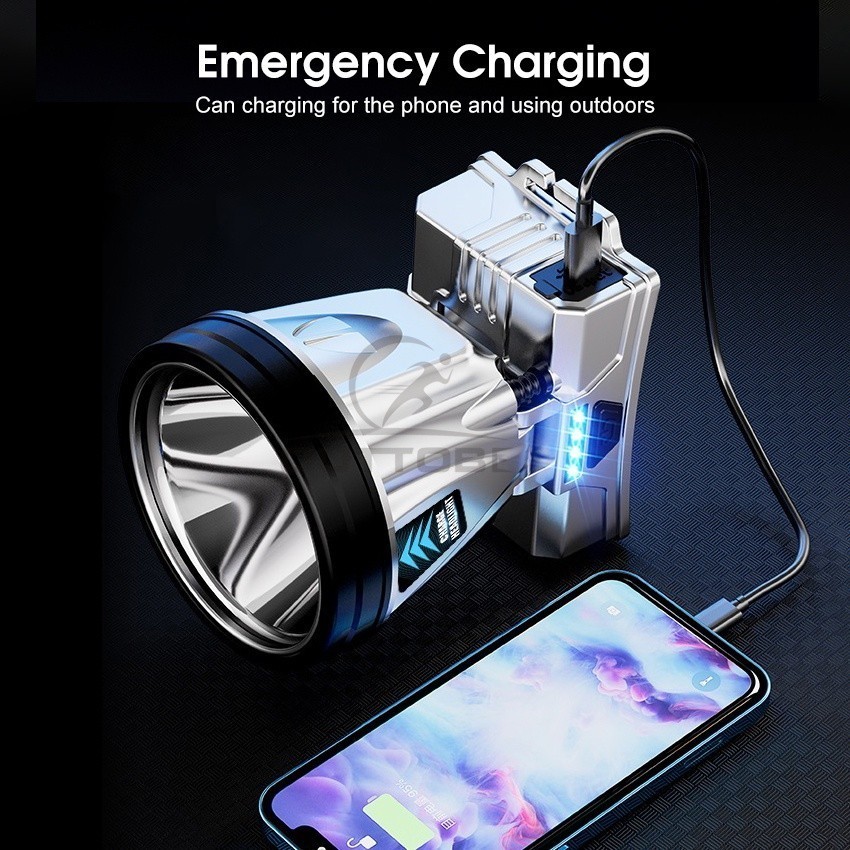 -Chức Năng Nguồn: Đèn pha được tích hợp 2 pin 1200mAh, có thể dùng để sạc điện thoại di động của bạn bất cứ lúc nào trong những trường hợp khẩn cấp ngoài trời.